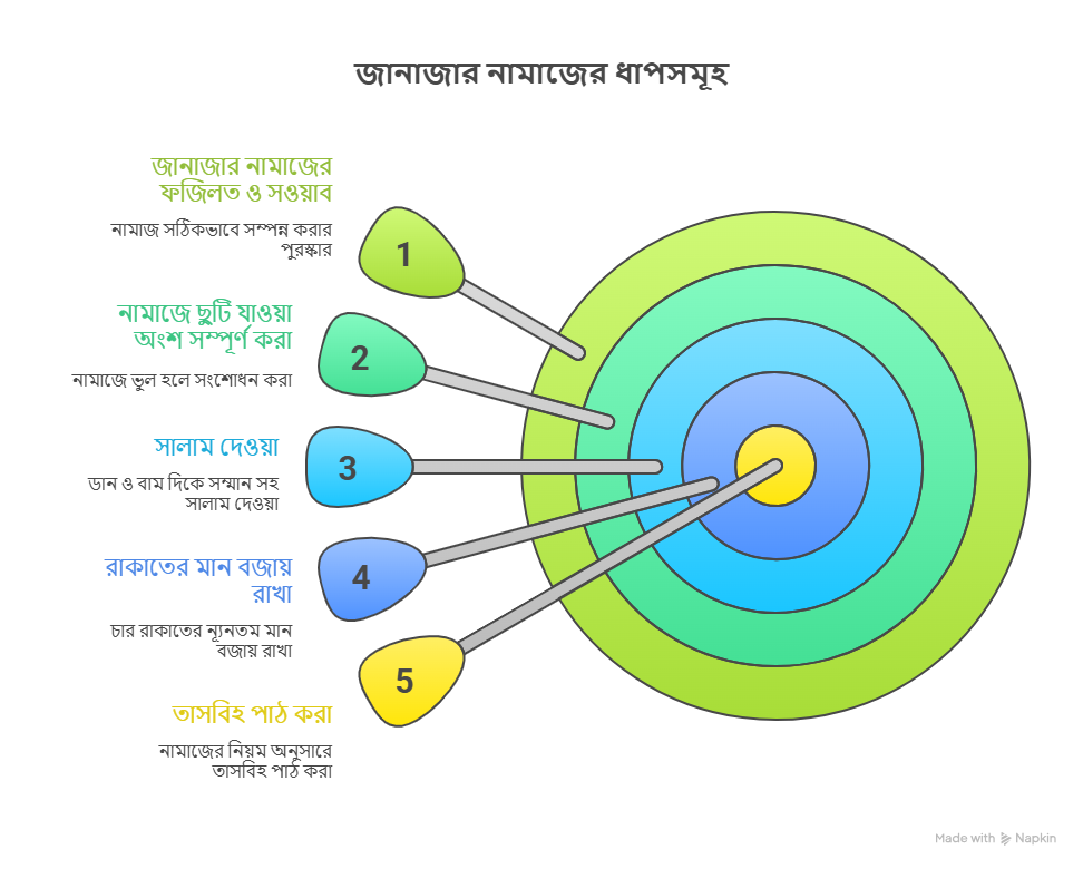 এই ধাপগুলো অনুসরণ করলে নামাজ সঠিকভাবে সম্পন্ন হবে এবং জানাযার নামাজের ফজিলত ও সওয়াব অর্জন করা যাবে।